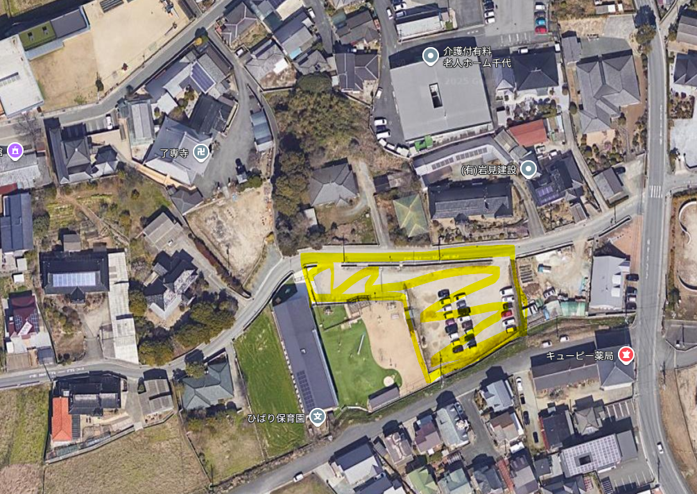 (下記画像参照 黄色の蛍光マーカーの範囲が駐車場となります)